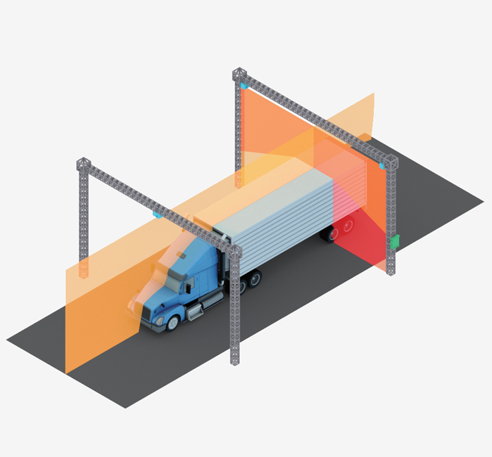 系統應用于高速公路入口,系統主要由激光雷達、應用單元及軟件(可選)等組成,對通過高速公路入口的車輛進行非接觸式快速獲取車輛數據信息,提高超限治理監管效率,降低超限治理監管成本。